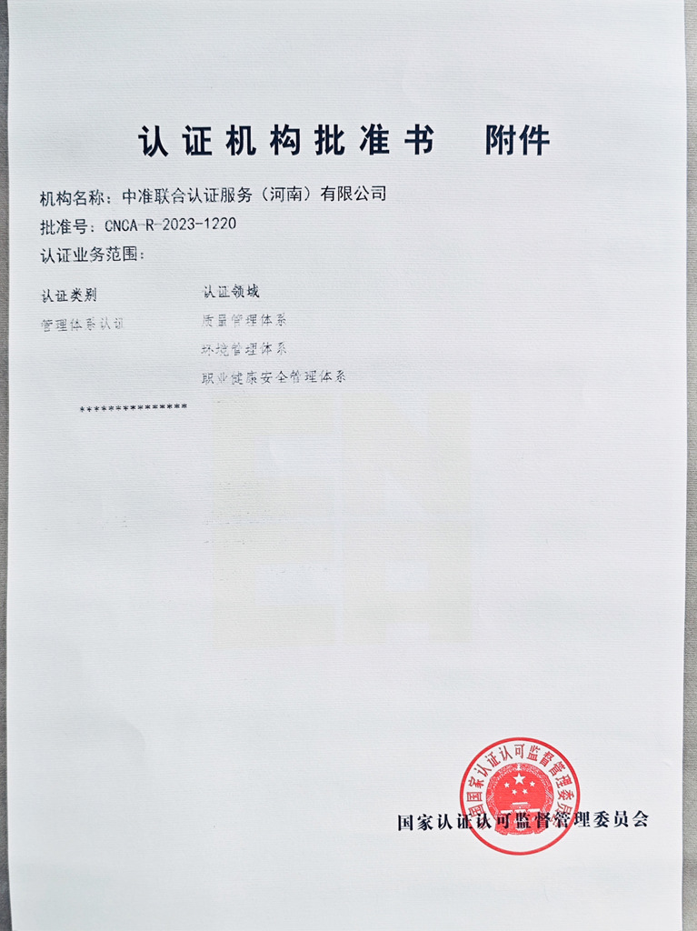 中准联合认证服务(河南)有限公司[简称ZHZHLH]是经中国国家认证认可监督管理委员会批准(批准号:CNCA-R-2023-1220),在中国注册的具有独立法人资格的第三方认证机构。公司主...